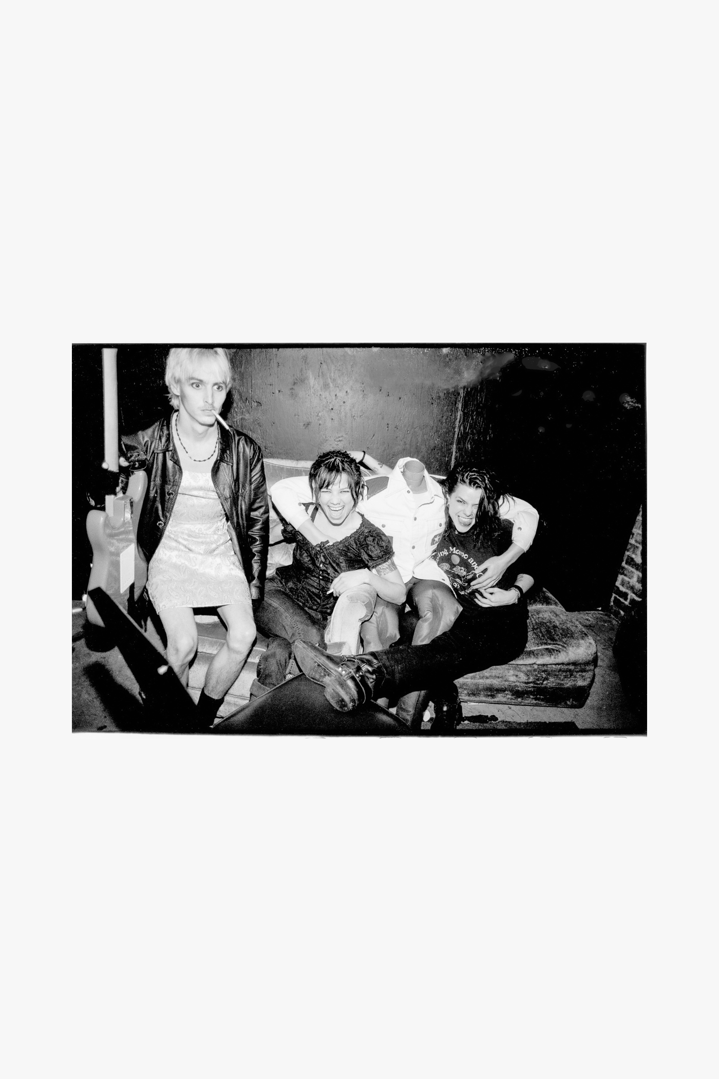 Mike McCready of Pearl Jam is photographed alongside Selene Vigil and Valarie Agnew of 7 Year Bitch by Lance Mercer in 1995. McCready’s expressive, blues-infused solos helped define Pearl Jam’s role in Seattle grunge, while Vigil and Agnew’s raw punk energy positioned 7 Year Bitch as fearless innovators. This photograph highlights the camaraderie between artists shaping the Seattle scene.
